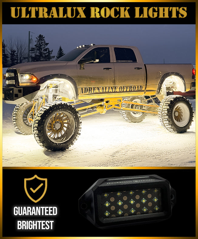 Pure White Rock Lights produce a bright, clean pure white light. This provides excellent ground visibility and a crisp, professional look compared to standard halogen or dim LED lighting.